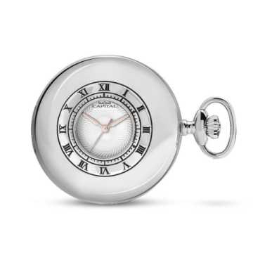 Capital men's pocket watch from the Prestige collection, quartz model with double round metal case with smooth back without chain. 51 mm diameter. White and gray dial with Arabic numerals.