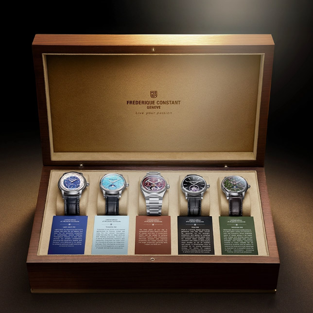 Limitato a soli 37 esemplari in tutto il mondo, questo set esclusivo racchiude la quintessenza dell'esperienza Frederique Constant con cinque orologi Manifattura iconici, ognuno animato da uno dei nostri celebri movimenti di manifattura.