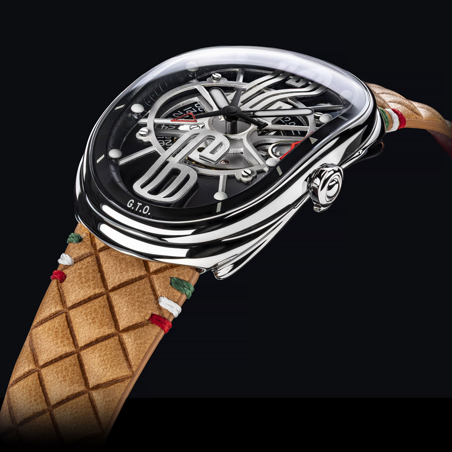 Questa nuova versione dell'orologio Borgonovo eleva le sue curve fluide, arricchendole con vibranti emozioni scaturite dall'idea di interpretare e catturare la forma della 250 GTO. Nasce così il "GTO", un orologio moderno e rivoluzionario, che coniuga complessità tecnica e un fascino magicamente romantico.