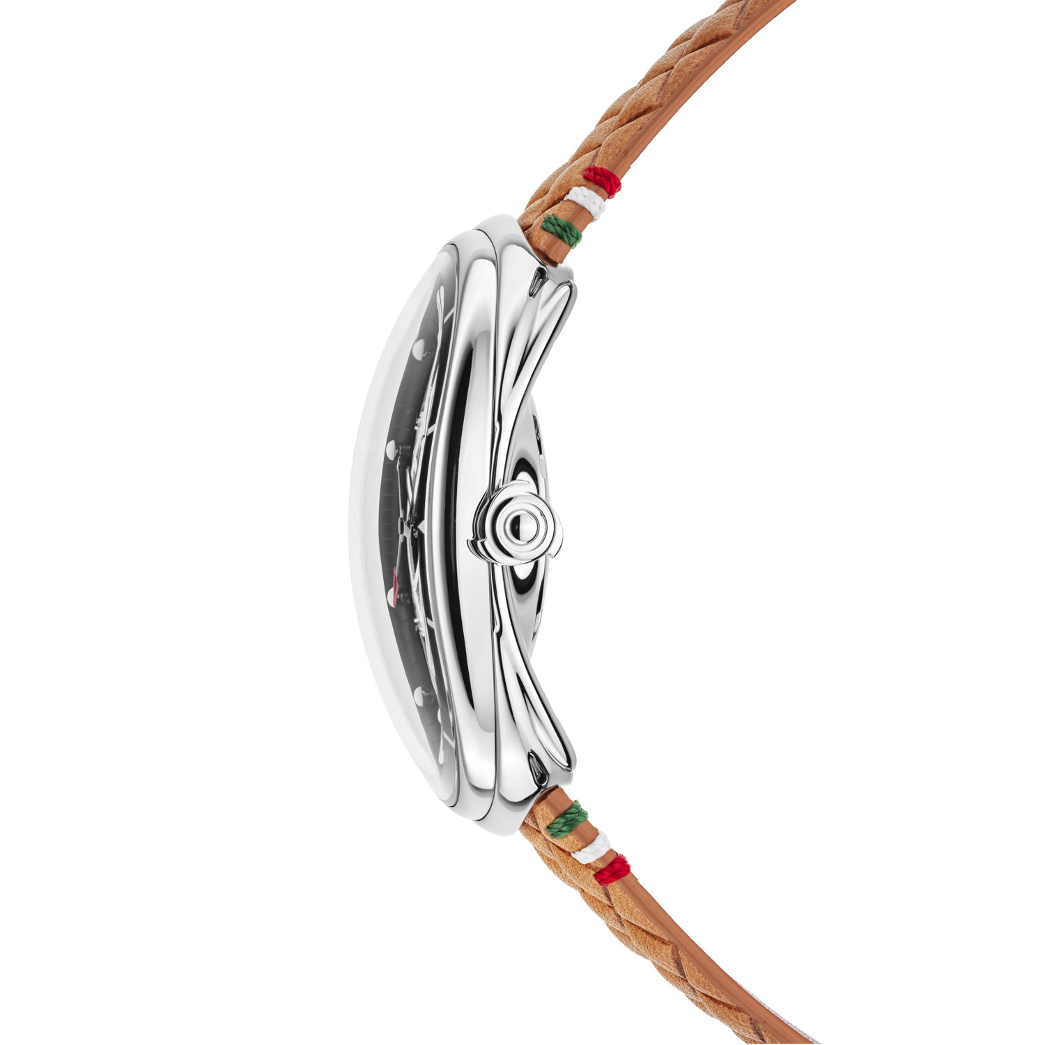 Questa nuova versione dell'orologio Borgonovo eleva le sue curve fluide, arricchendole con vibranti emozioni scaturite dall'idea di interpretare e catturare la forma della 250 GTO. Nasce così il "GTO", un orologio moderno e rivoluzionario, che coniuga complessità tecnica e un fascino magicamente romantico.