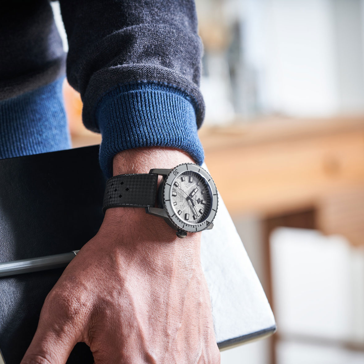 With the Super Sea Wolf Meteorite watch Zodiac presents a limited edition watch of only 182 pieces with a dial made with a real Muonionalusta meteorite.