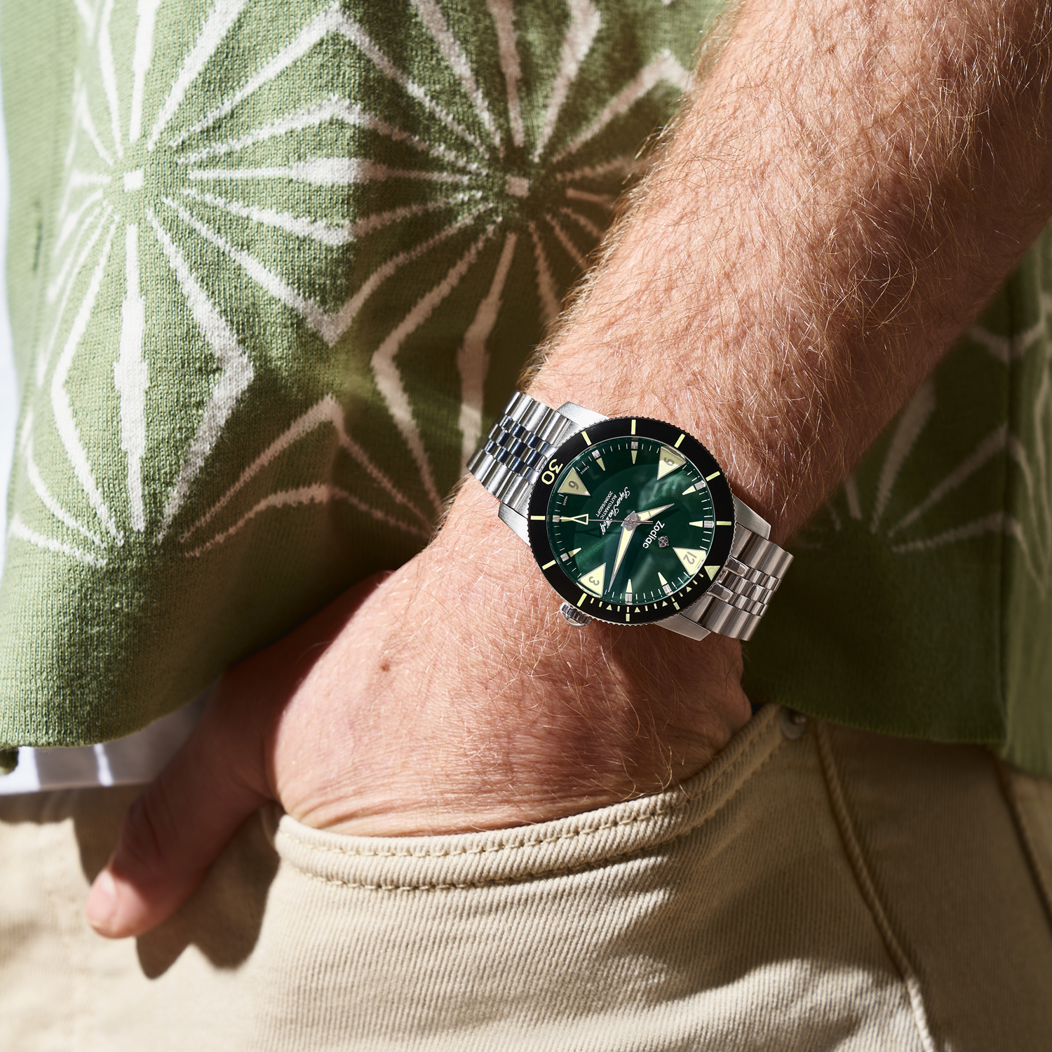 Lanciato originariamente nel 1953, lo Zodiac Super Sea Wolf è stato uno dei primissimi orologi subacquei al mondo. Quest’anno ricorre il 70° anniversario del lancio del primo Super Sea Wolf e per celebrare questa data, Zodiac ha creato una nuova versione del Super Sea Wolf Skin Diver che reinventa il design del suo orologio subacqueo originale con materiali moderni e un quadrante di colore verde intenso.