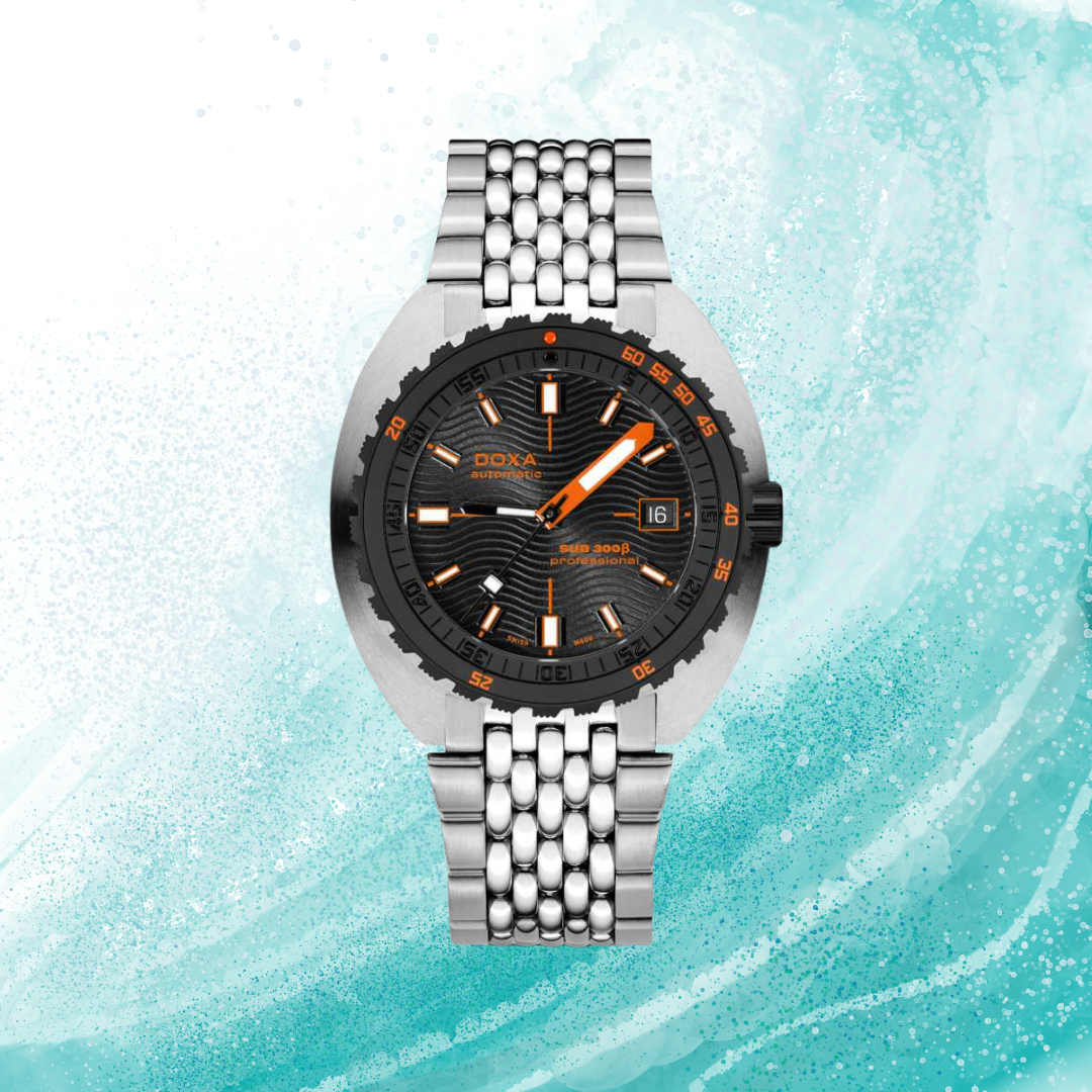The Doxa Sub 300 Professional is an icon of the underwater world, famous for its distinctive design. The black ceramic bezel and screw-down crown enhance its sporty-chic character, completed by a dial with a refined soleil finish. Available on a FKM rubber strap or a stainless steel “Beads of Rice” bracelet, both featuring a ratcheting deployment clasp, the watch is water resistant to 300 metres. Click here to see the watch!