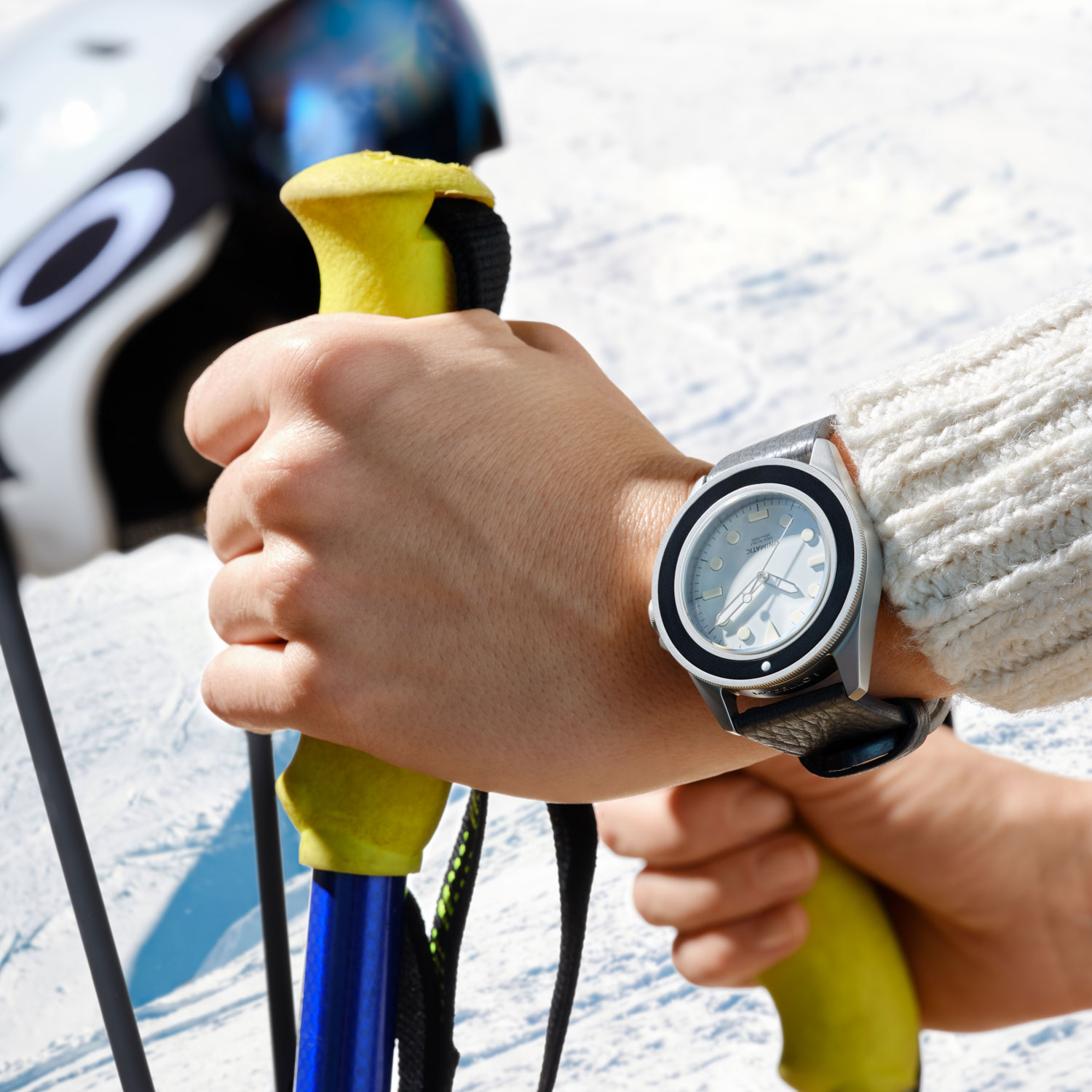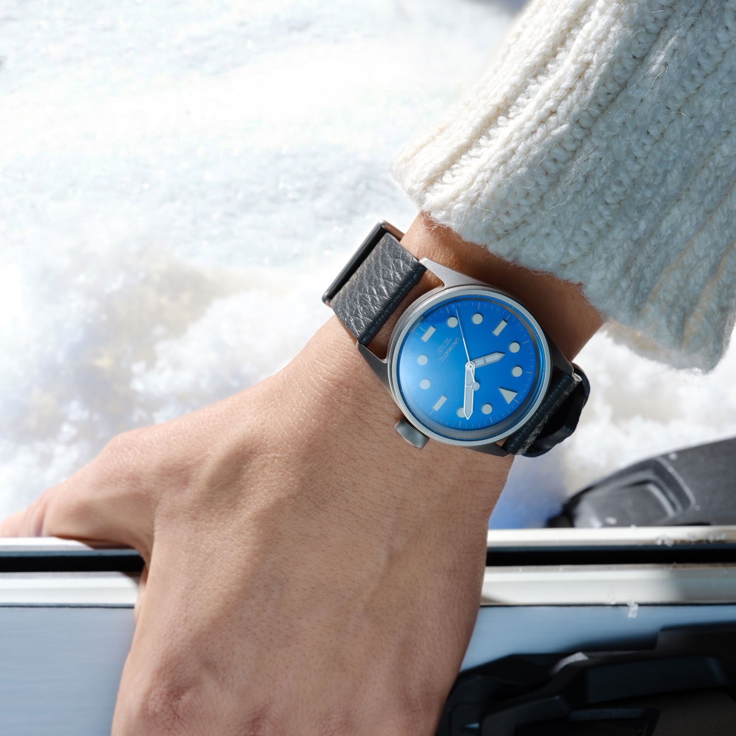 La collezione "Alpi Italiane" nasce dalla potente bellezza del paesaggio montano. Dimenticate i toni caldi: qui si celebra la chiarezza elementare. L'ispirazione si traduce in due colorway essenziali: l'Alpine Sky Blue, che cattura il blu vivido e saturo del cielo d'alta quota, e il Glacier White, che evoca il bianco immacolato e puro delle nevi perenni. Il risultato è un orologio che incarna la quieta maestosità e la forza della natura.