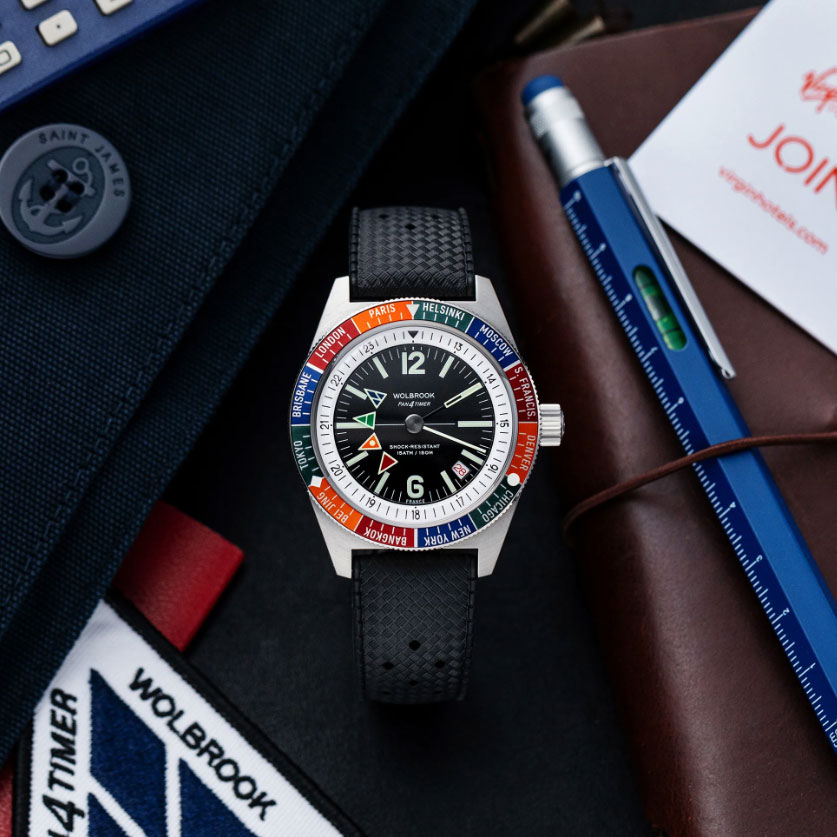 Dalle origini americane, Wolbrook si è rapidamente imposto nel mondo dell’orologeria con orologi solidi e precisi, caratterizzati da una costruzione resistente e da una qualità artigianale rigorosa. Già negli anni ’50 e ’60, la casa produce segnatempo iconici come lo Skindiver Worldtimer, un vero e proprio strumento combinato da immersione e da aviazione, apprezzato da piloti e professionisti di ogni genere.