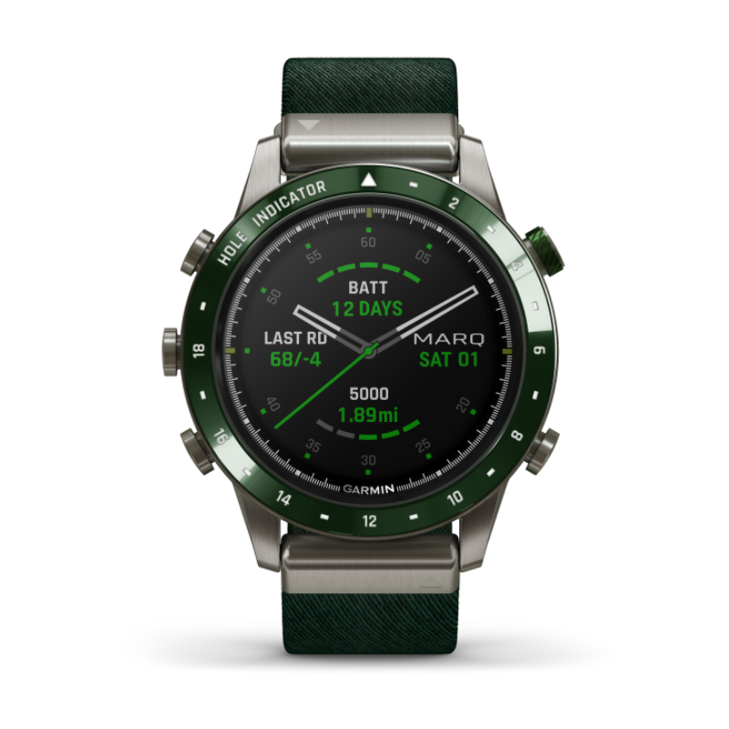 MARQ® Golfer is not just a smartwatch, it will be part of your game strategy and athletic endeavors. It will allow you to share these with anyone by retrieving historical data or you can simply enjoy your game in real time via the Garmin Golf™ app, as it allows you to analyze your performance, enter tournaments and gather metrics.
